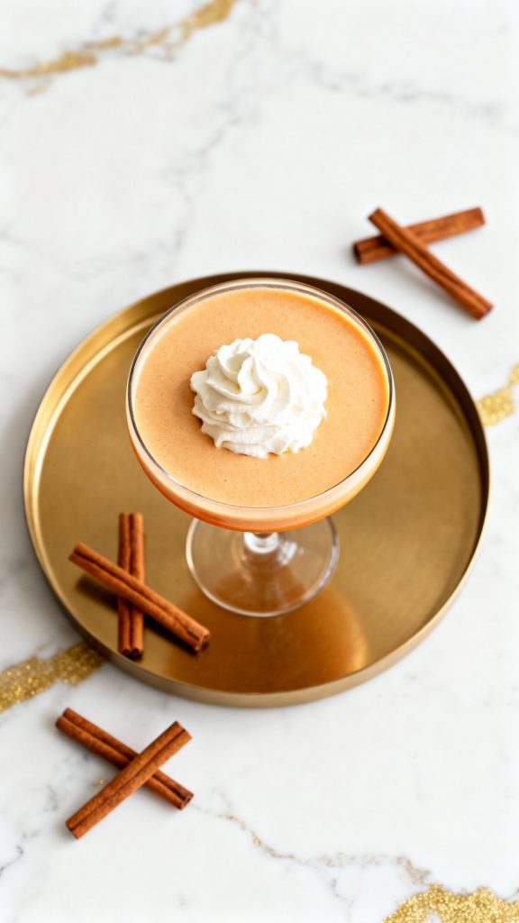 Strain the drink into a chilled martini glass. Top with whipped cream, a pinch of ground cinnamon, and a cinnamon stick if you’re feeling extra.