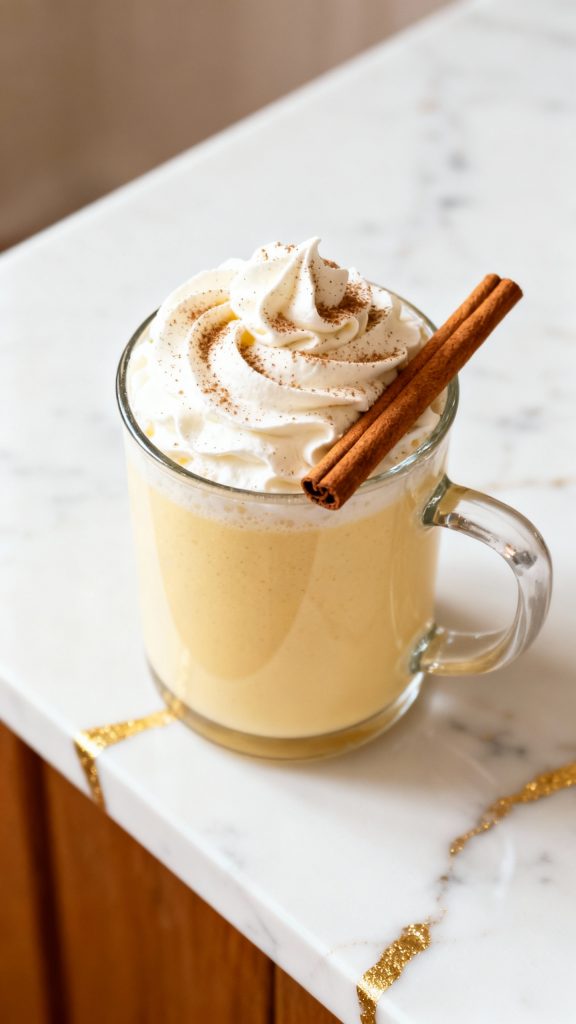 Dust with a pinch of ground nutmeg and add a cinnamon stick for garnish.
