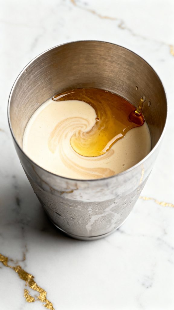 Step 1: Add Eggnog and Amaretto to Shaker