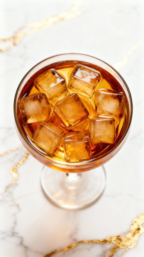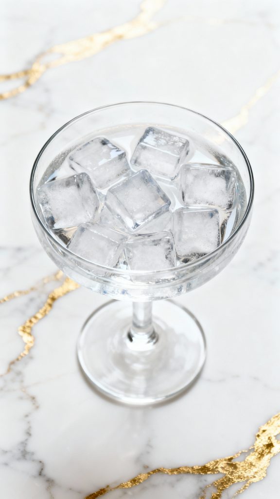 Fill a round cocktail glass with fresh ice cubes. This keeps everything cold and smooth.