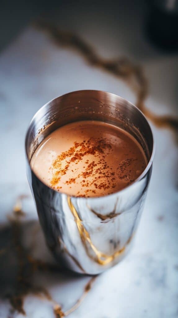Add a handful of ice cubes to the shaker, close the lid, and shake hard for 20 seconds until well chilled.