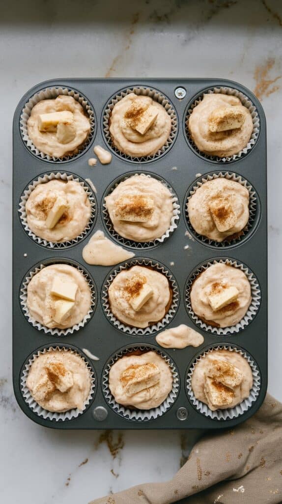 Scoop the batter into a lined or greased 12-cup muffin tin. Bake at 350°F (175°C) for 20–22 minutes, or until a toothpick comes out clean.