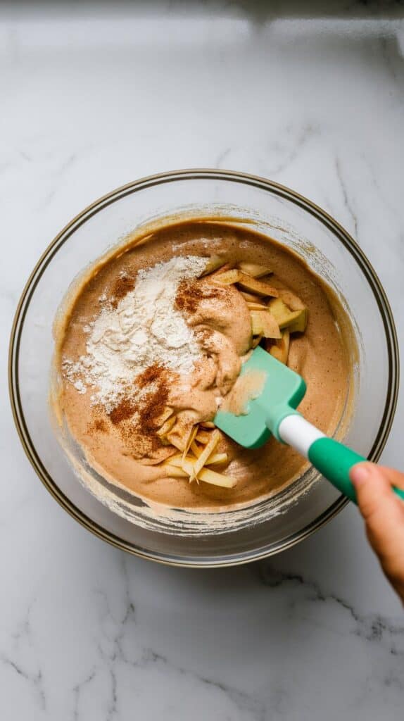 Add the dry ingredients to the wet apple mixture and stir gently with a spatula until just combined. Don’t overmix.