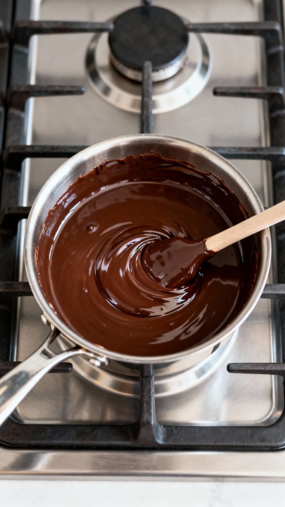 - Ganache adds a glossy, melty chocolate moment right in the middle