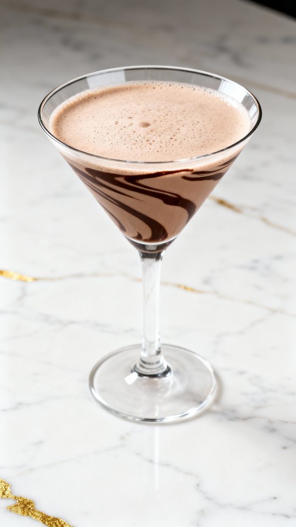 Strain the drink into the prepared martini glass. It should be smooth, mocha-colored, and lightly foamy on top.