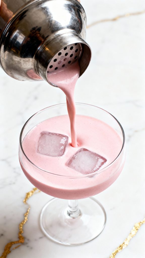 Strain the drink into a small glass (8 oz) filled with 1–2 ice cubes.
