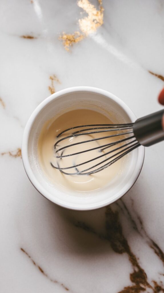 Add flour, 1 tbsp cornstarch, baking powder, baking soda, and salt to the wet mixture. Gently fold until just combined—don’t overmix!