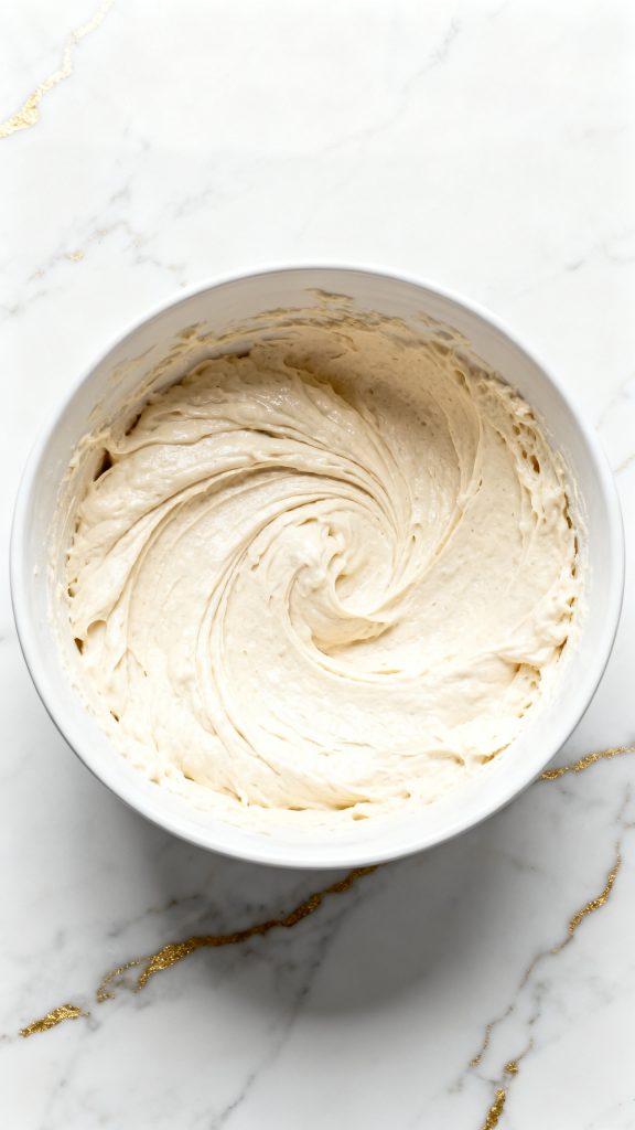 Pour the smooth blended cottage cheese mixture into the bowl with the dry ingredients. Gently stir until a thick, smooth batter forms with no dry streaks.