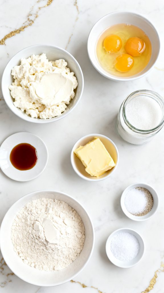 Add 1 cup full-fat cottage cheese, 2 large raw eggs, 1/3 cup granulated sugar, 3 tablespoons melted unsalted butter, and 1 teaspoon vanilla extract to a blender. Blend until completely smooth with no visible curds.