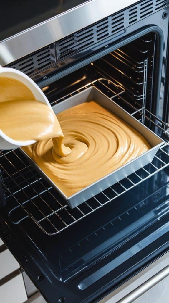 Pour the batter into a greased 9×9-inch pan and bake at 350°F (175°C) for 25-30 minutes.