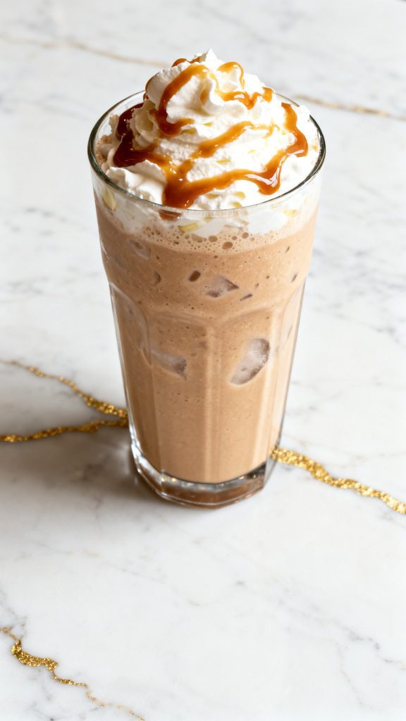 Pour into a glass, top with whipped cream, and drizzle extra caramel sauce.