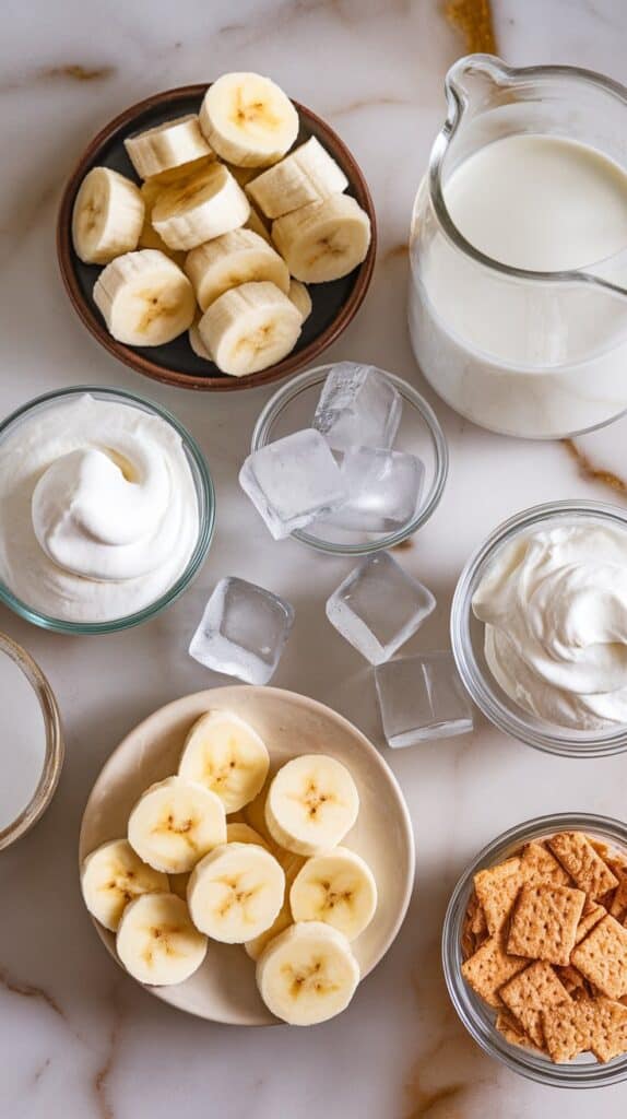 - Optional toppings: whipped cream, banana slices, crushed graham crackers