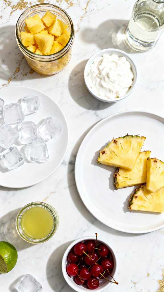 The frozen pineapple makes the drink naturally thick and icy, while the coconut cream adds a smooth, rich texture. When everything blends together, it tastes like a tropical vacation in a glass.