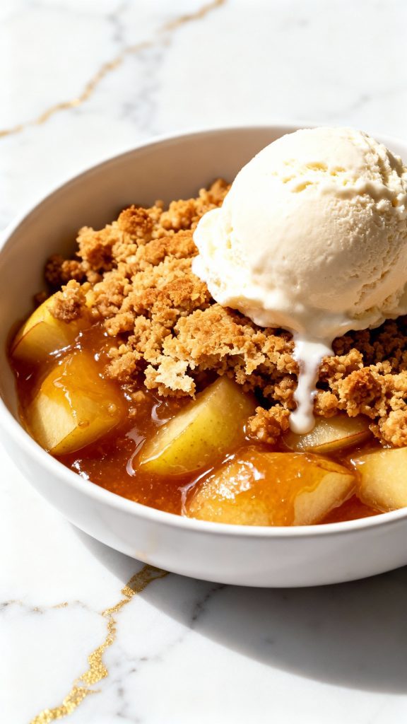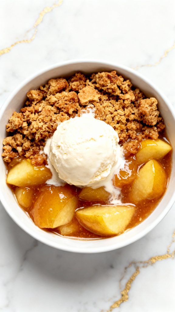 Let it cool for 5–10 minutes. Serve warm in individual bowls, optionally with vanilla ice cream or whipped cream.