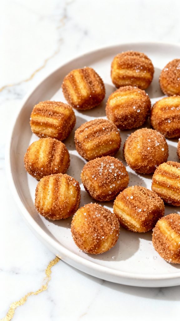 Heat oil to 350°F. Carefully lower churro bites into oil, 4–5 at a time. Fry for 2–3 minutes, flipping once, until golden brown. Remove with slotted spoon.