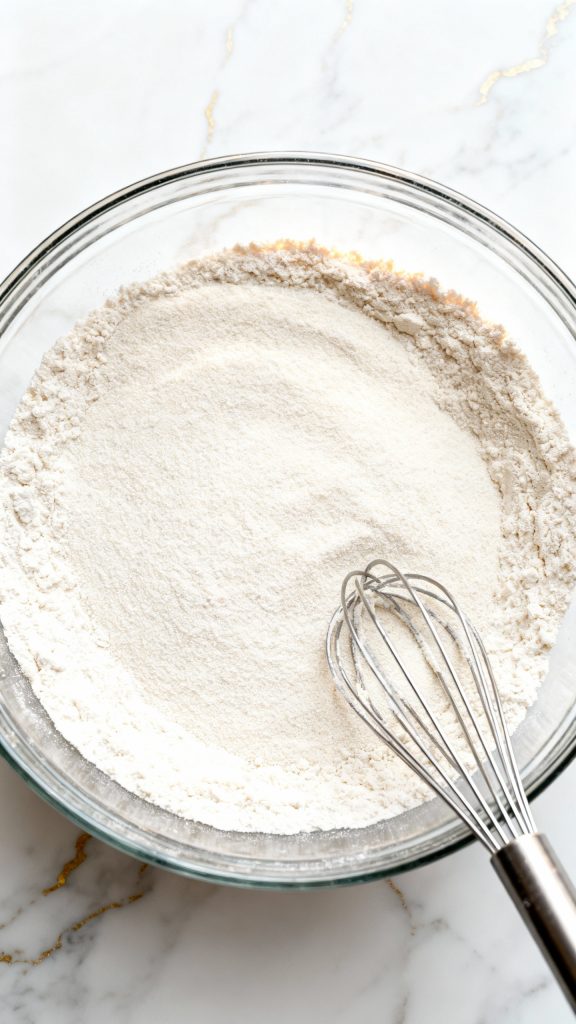 In a medium bowl, whisk together 1 ½ cups all-purpose flour, 1 tsp baking powder, ½ tsp baking soda, and ¼ tsp salt.