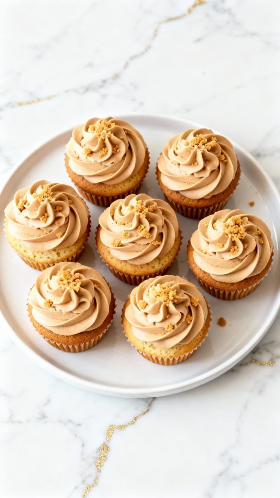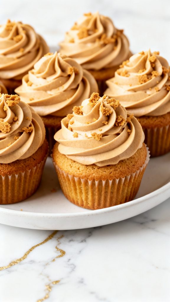 These Biscoff cookie butter cupcakes are soft, fluffy, and full of that caramel-y, spiced cookie butter flavor in every bite.