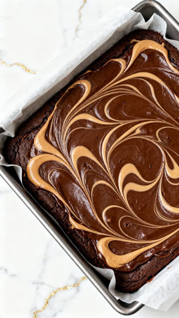 Microwave 1/2 cup Biscoff spread for 15 seconds until pourable. Dollop spoonfuls across the brownie batter, then use a butter knife to swirl it gently.