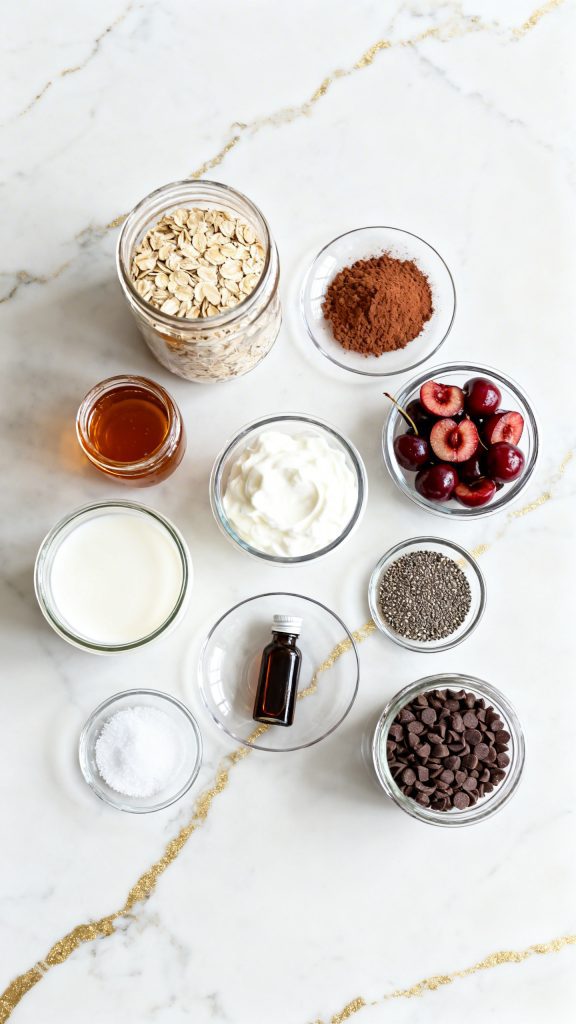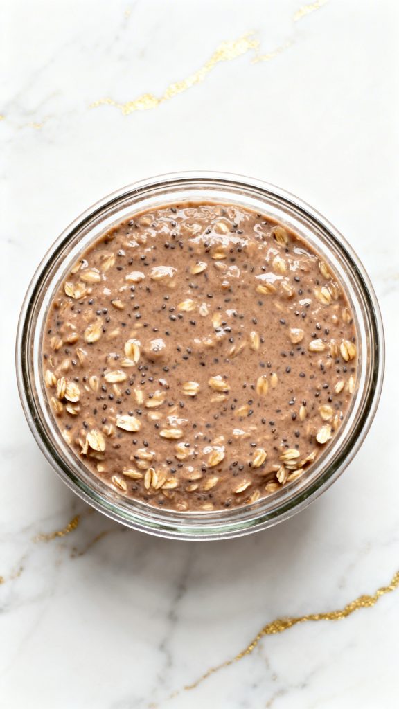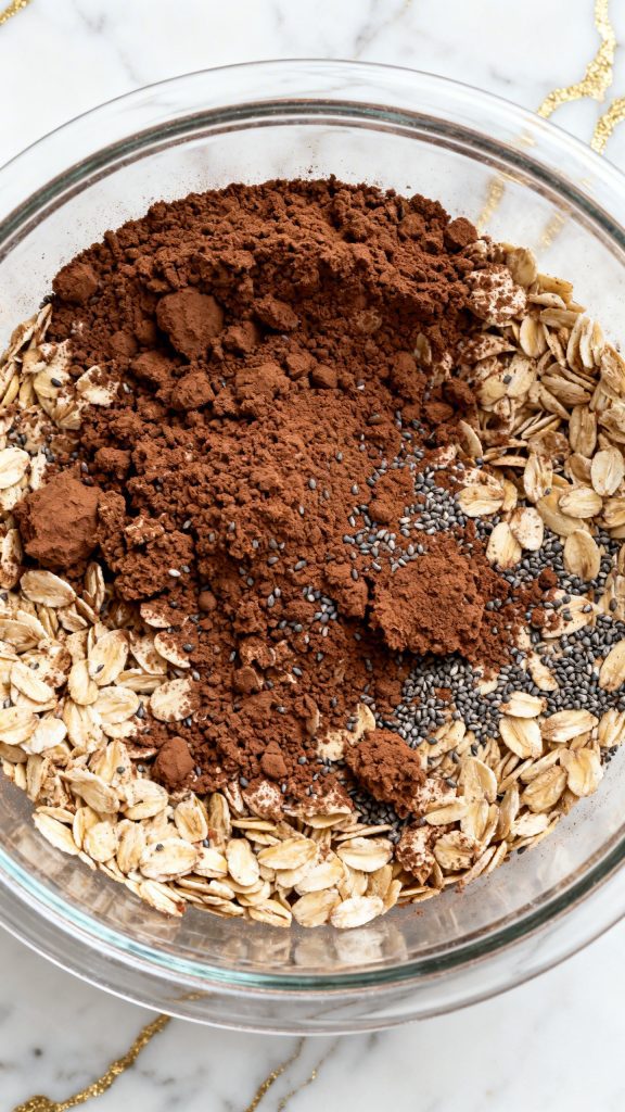 Chia seeds absorb liquid and help thicken the oats. Cocoa powder gives deep flavor without extra sugar. Letting it sit overnight softens the oats and blends all the flavors together.