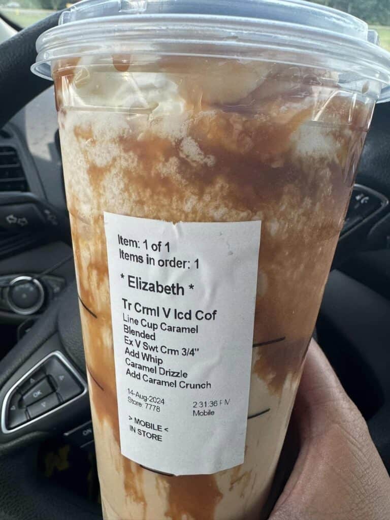 This drink is perfect for anyone who loves a sweet and creamy caramel apple flavor with a little extra crunch!