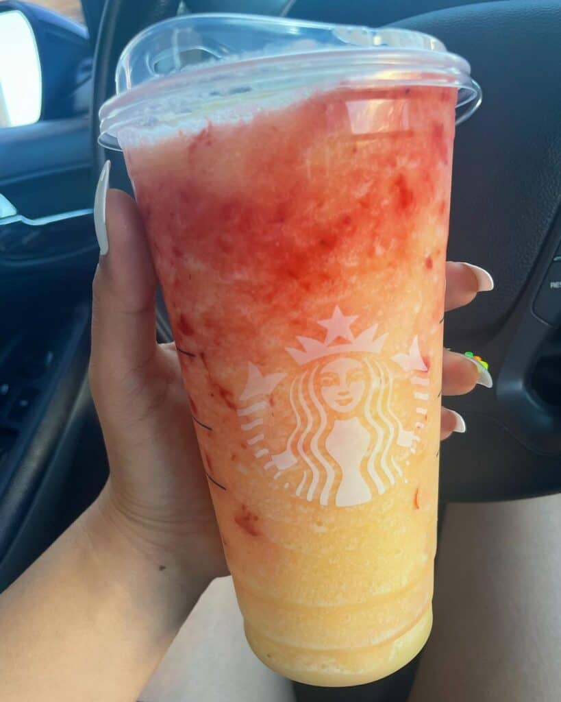 - Start with a Mango Dragonfruit Refresher, but ask for no water.
