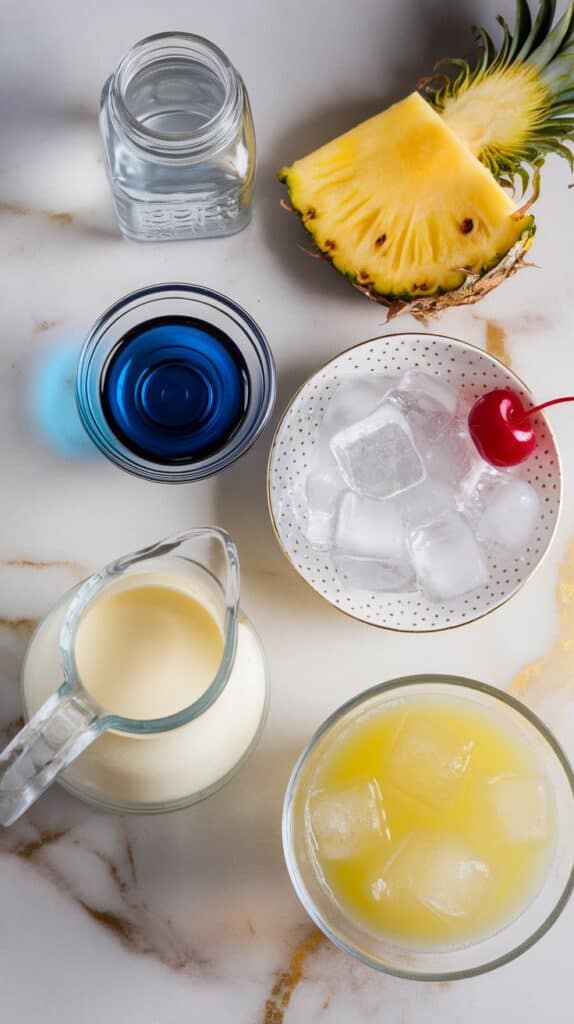 - You can pre-mix the rum, blue curaçao, pineapple juice, and coconut cream and keep it in the fridge.