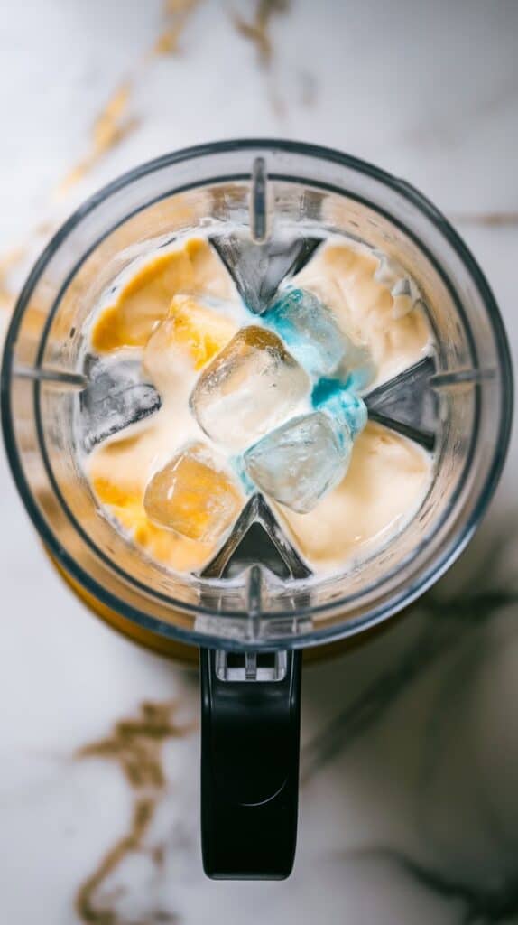 Blend everything on high for 20–30 seconds, just until smooth and frothy. Don’t over-blend or it’ll melt too fast.