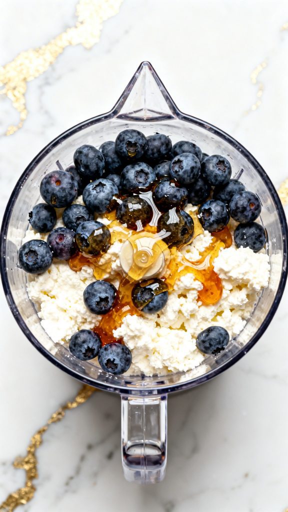 Step 1: Add Cottage Cheese and Blueberries to Blender