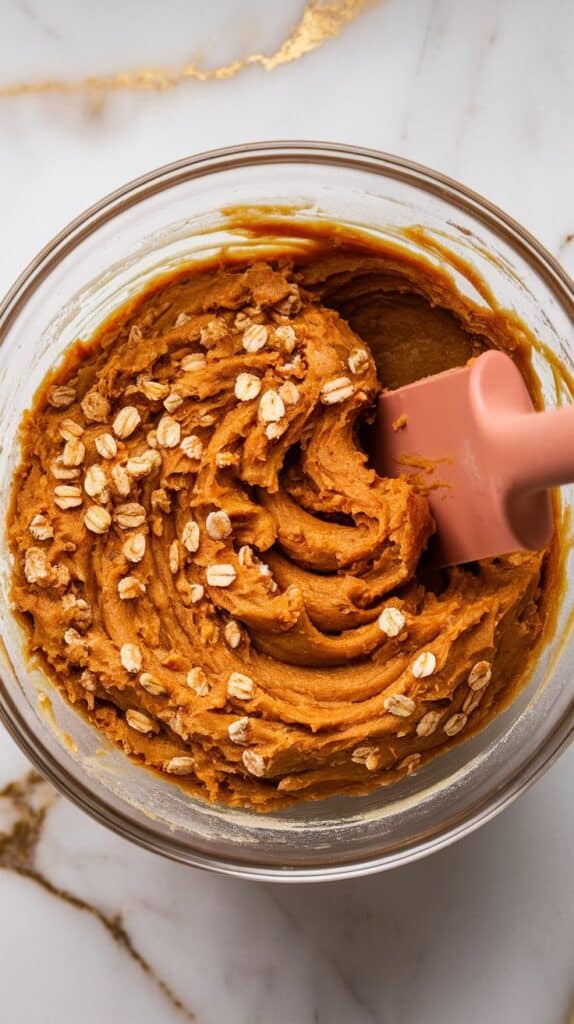 Add 3 cups of old-fashioned oats to the bowl. Stir until fully combined. The dough will be soft and thick.