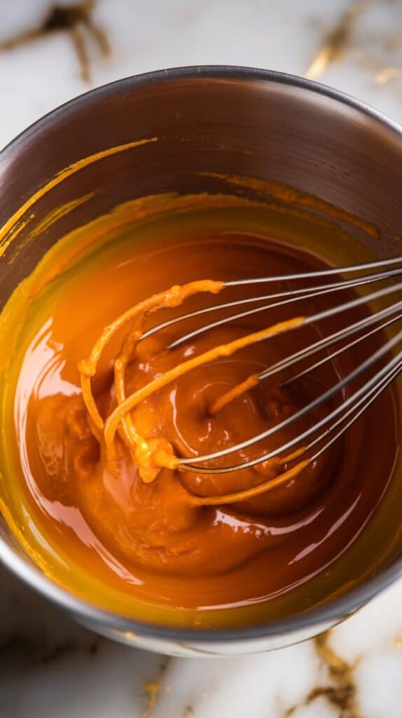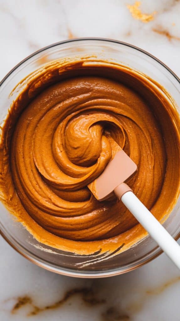 Whisk in ¾ cup canned pumpkin, 1 cup brown sugar, ½ cup granulated sugar, 1 large egg, and 2 tsp vanilla extract into the cooled brown butter. Whisk until smooth and glossy.