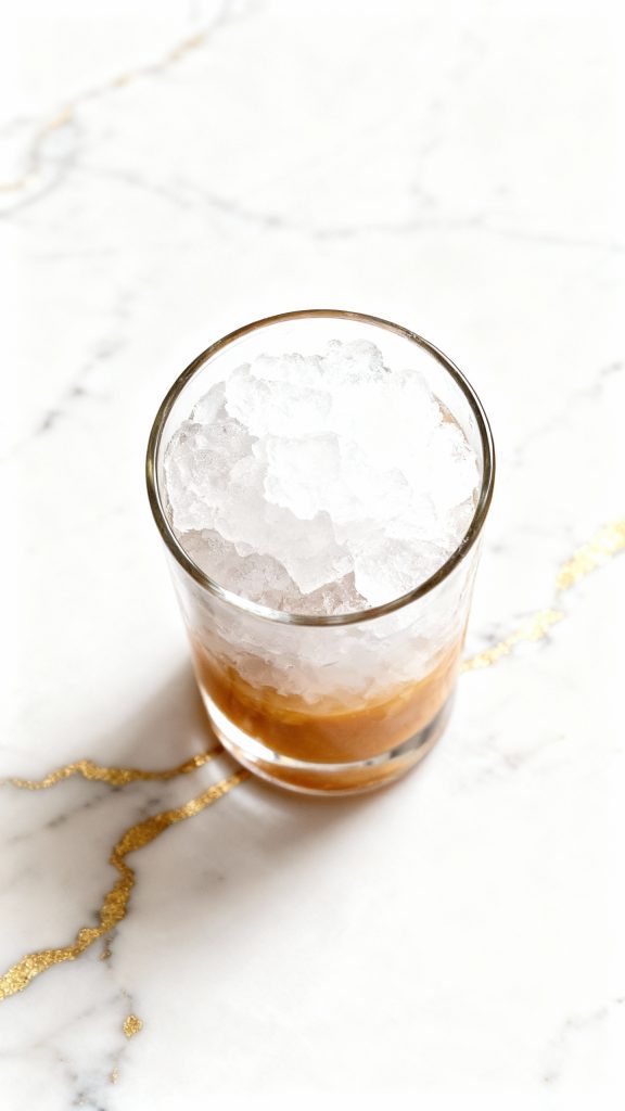 Add ½ cup crushed ice directly over the syrup.