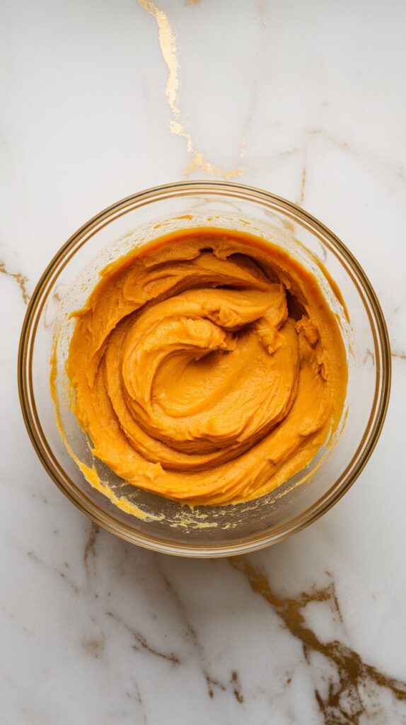 Cut 1 small butternut squash in half lengthwise and scoop out the seeds. Place it cut side down on a baking sheet and roast at 400°F for about 40–45 minutes, or until the flesh is soft and caramelized. Let it cool, then scoop out and mash until smooth. Measure 1 ½ cups.