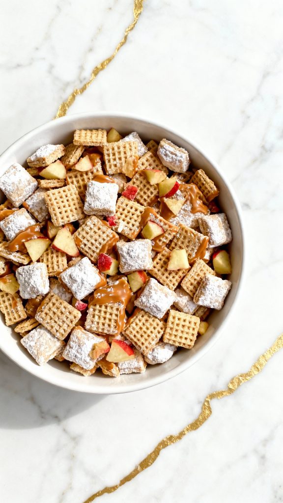 Okay, let’s just say it: this Caramel Apple Puppy Chow is dangerously good.