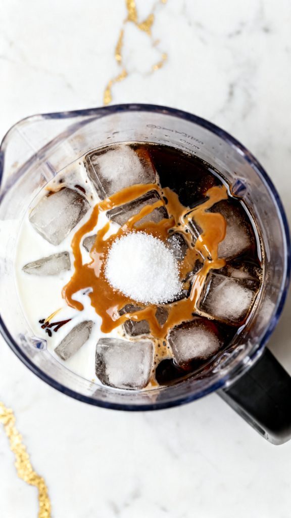 The ice creates that slushy texture while blending breaks it into tiny crystals. The milk adds smoothness, and caramel brings both sweetness and a rich, slightly buttery flavor. Strong coffee keeps everything balanced so it doesn’t taste watered down.