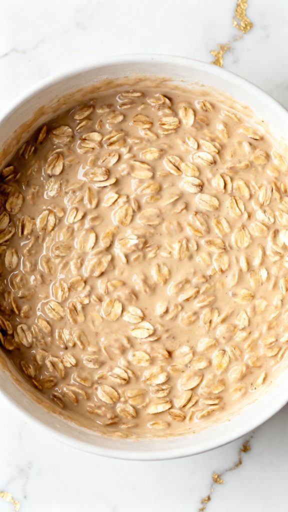 Overnight oats soften because the oats absorb liquid through starch hydration. As they sit in the coffee and milk, the starch granules swell and soften.