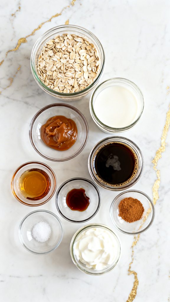 The oats soak up the coffee flavor overnight, and the caramel brings that classic macchiato sweetness. By morning, the texture is thick, creamy, and almost like a chilled latte pudding.