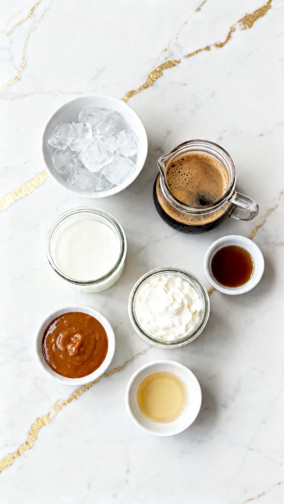 Espresso is heavier and darker than milk, so when you pour it slowly over ice, it sits in layers instead of blending right away. That is what gives a caramel macchiato its classic look. The cold foam works because heavy cream has enough fat to trap air when frothed, which makes it thick and silky. Adding a little milk keeps it from getting too heavy, while caramel sauce and vanilla syrup flavor the foam without making it too dense.