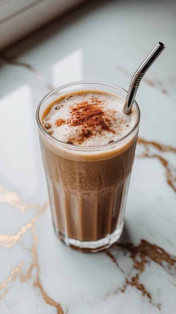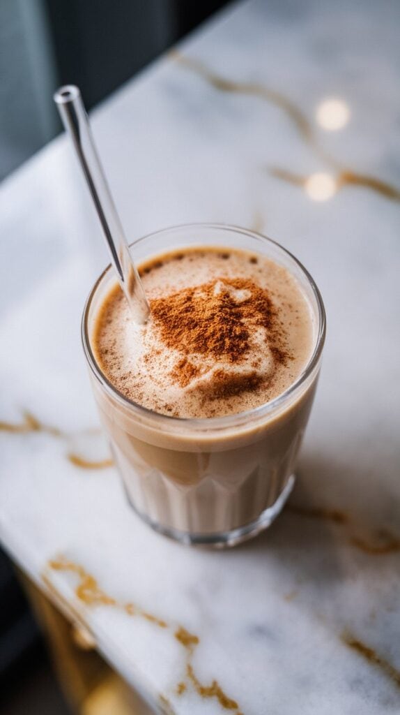 This is the answer. It’s smooth, icy, spicy, and perfectly sweet. You just toss a few things in the blender and boom—café vibes at home.