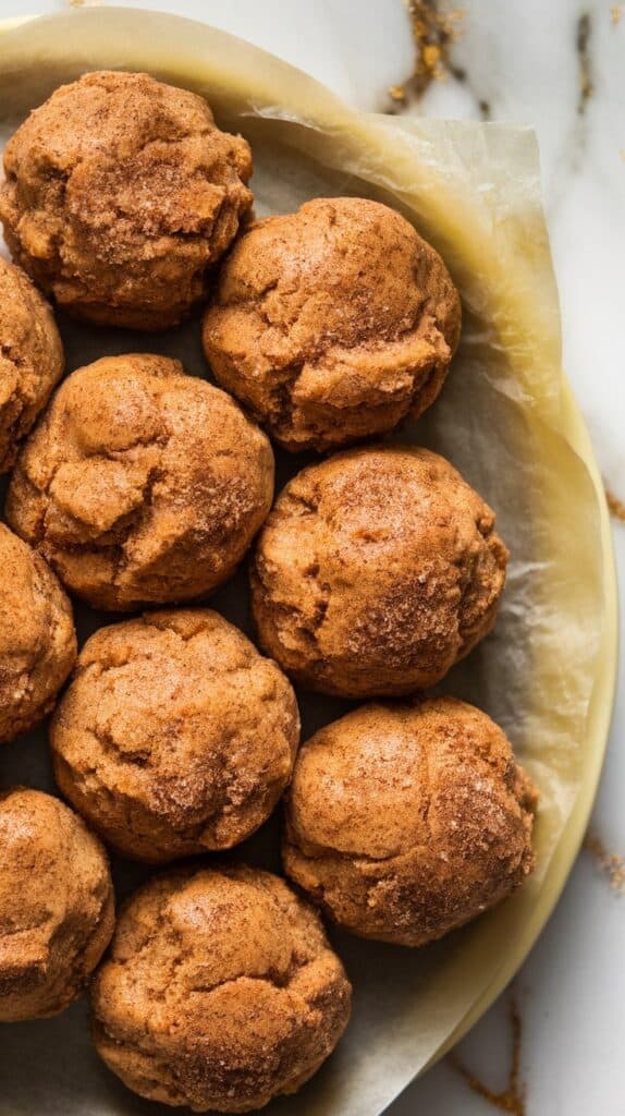 In a large bowl, beat 1 cup softened butter and 1 ½ cups granulated sugar until light and fluffy. Add 2 large eggs and beat until combined. Stir in 2 ¾ cups all-purpose flour, 2 tsp cream of tartar, 1 tsp baking soda, ¼ tsp salt, and 1 tbsp ground cinnamon until dough forms.