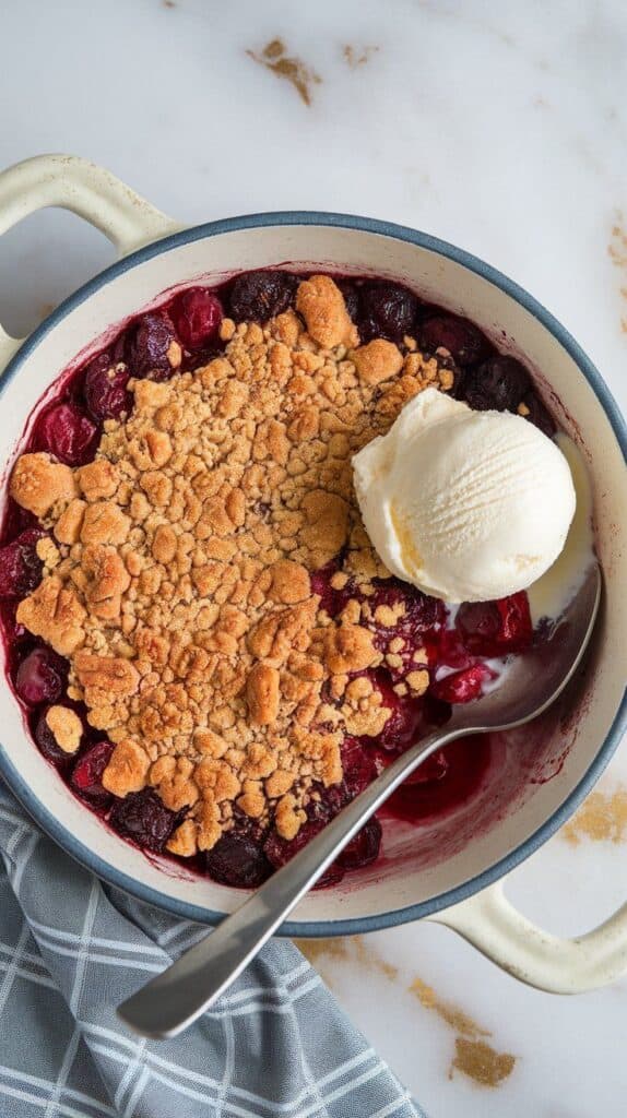 This crisp brings together all the good stuff: sweet summer cherries, buttery topping, a touch of crunch from cornmeal. The topping isn’t just flour and sugar—it’s got texture and flavor that makes every bite extra satisfying. I’ve made it for brunch, dinner parties, and even eaten leftovers cold from the fridge.