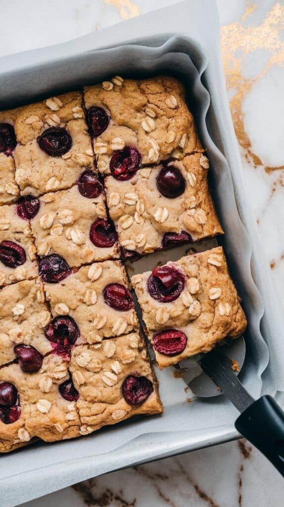 If you love chewy oatmeal cookies and juicy summer cherries, then you’re gonna love these Cherry Oatmeal Cookie Bars. They’ve got all the comforting flavors of a homemade cookie, but in easy bar form. You just press the dough into a pan, bake, slice, and you’re done. Perfect for sharing… or not sharing at all. 😄