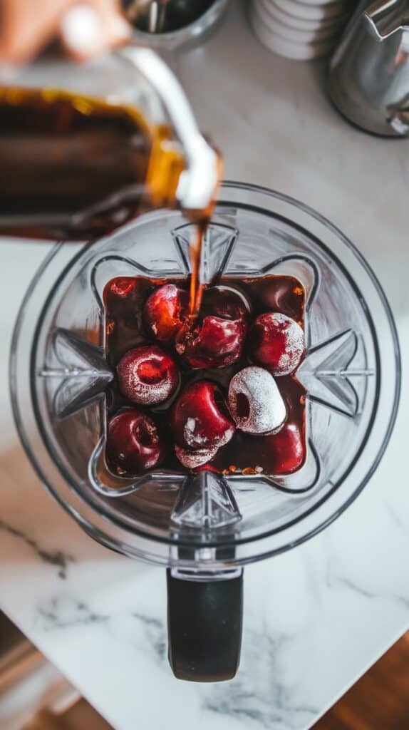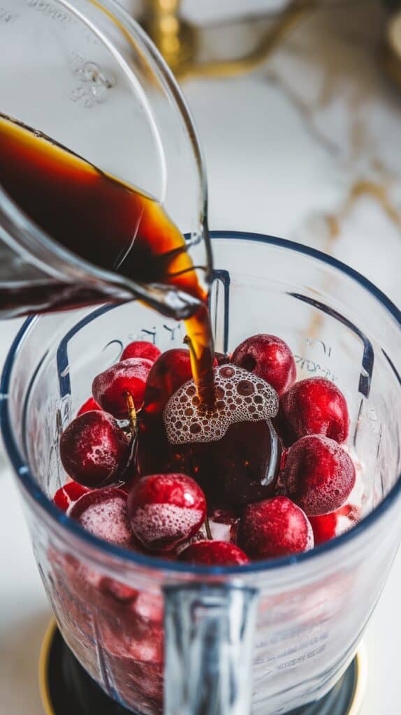 Flat cola works better than fizzy—it blends smoother and won’t foam up. Frozen cherries help chill and thicken the mix, while ice gives it that perfect slush texture. Vanilla rounds out the flavors and brings a creamy, soda-shop vibe.