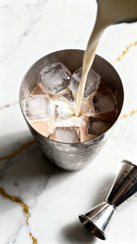 Close the shaker and shake for about 15–20 seconds until the mixture is very cold and slightly frothy.