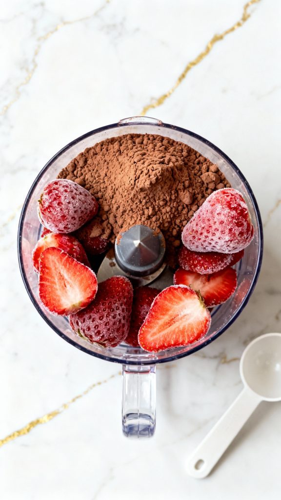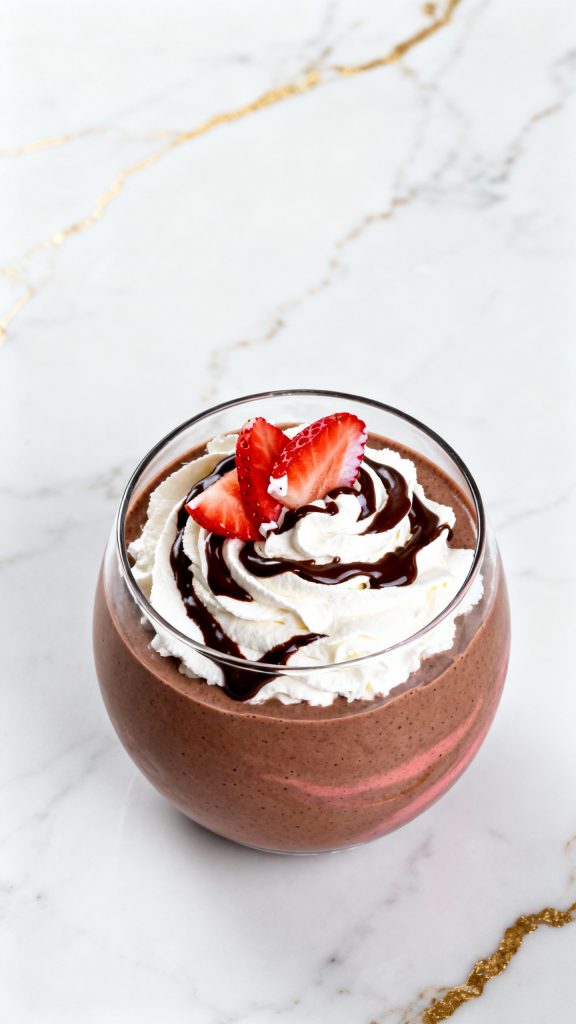 You just toss everything in a blender, hit go, and you’ve got a thick, creamy shake that tastes like a chocolate-covered strawberry.