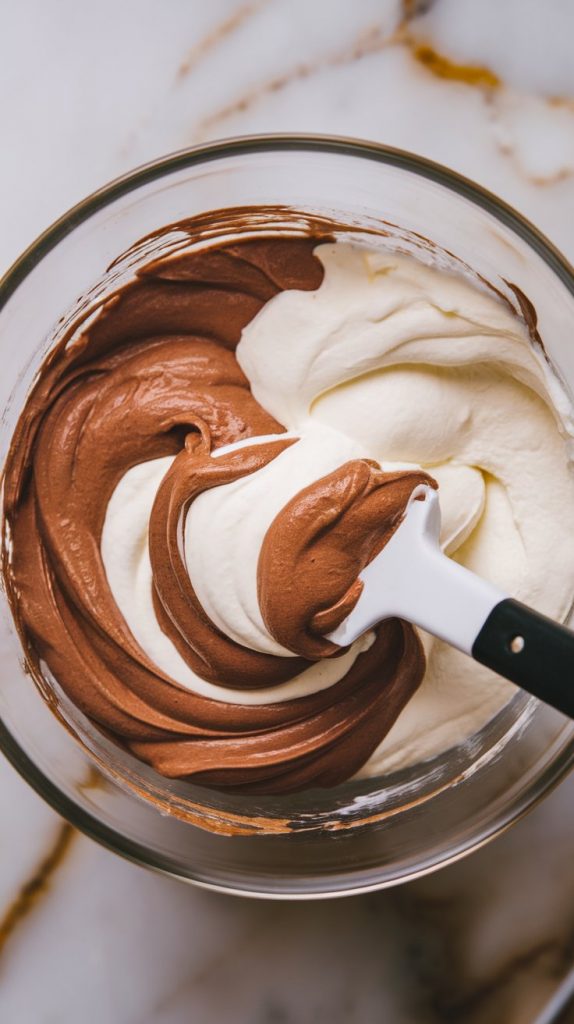 Gently fold the cooled chocolate mixture into the whipped cream using a spatula. Mix just until combined and smooth—don’t overmix.
