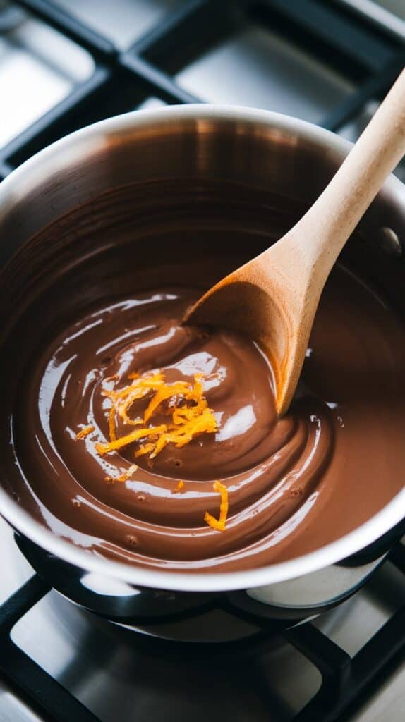 Stir in 1 teaspoon vanilla extract, 1 tablespoon orange zest, and ¼ teaspoon orange extract (optional). Keep stirring gently.