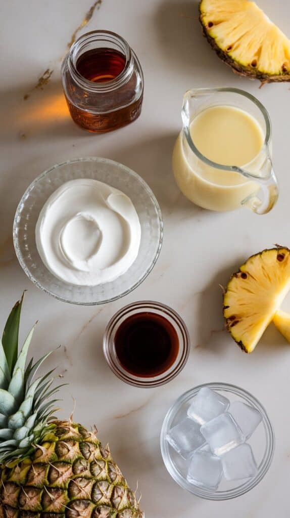 - Optional toppings: toasted coconut, pineapple wedge, whipped cream