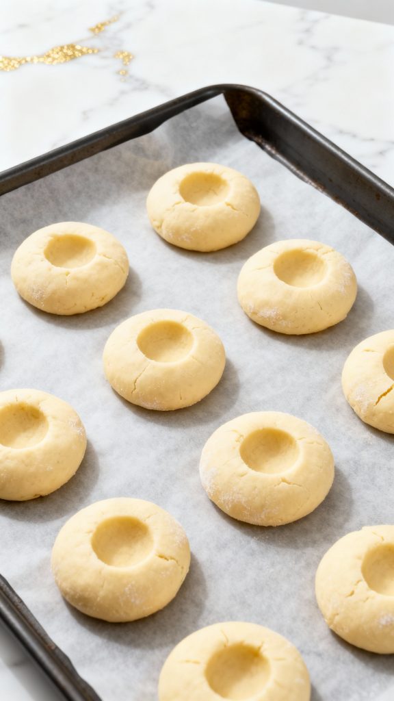 - Thumbprint too shallow: Make a deep well or the filling will just sit on top.