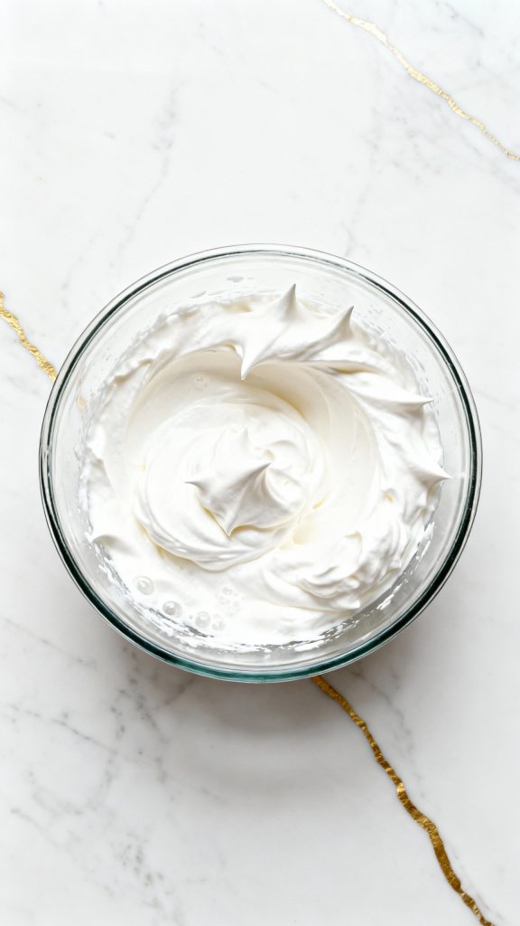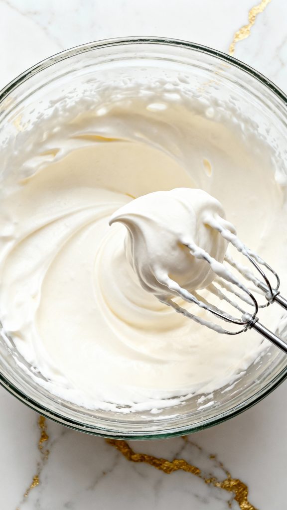 In a clean bowl, beat 3 egg whites with a hand mixer until stiff peaks form.