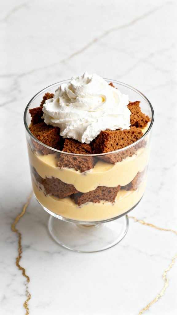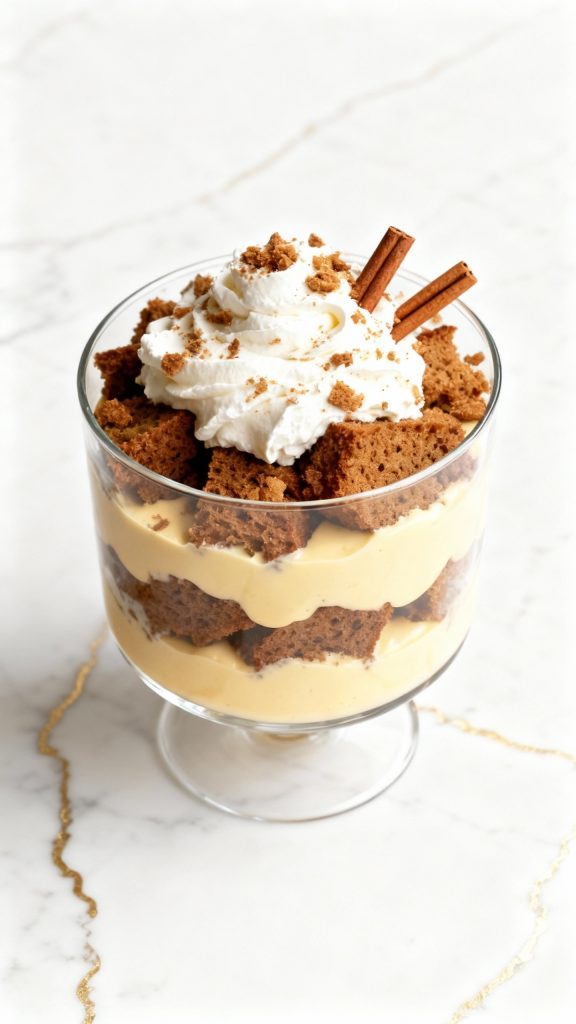 Think layers of soft gingerbread cake, vanilla pudding, whipped cream, and crushed gingersnaps.